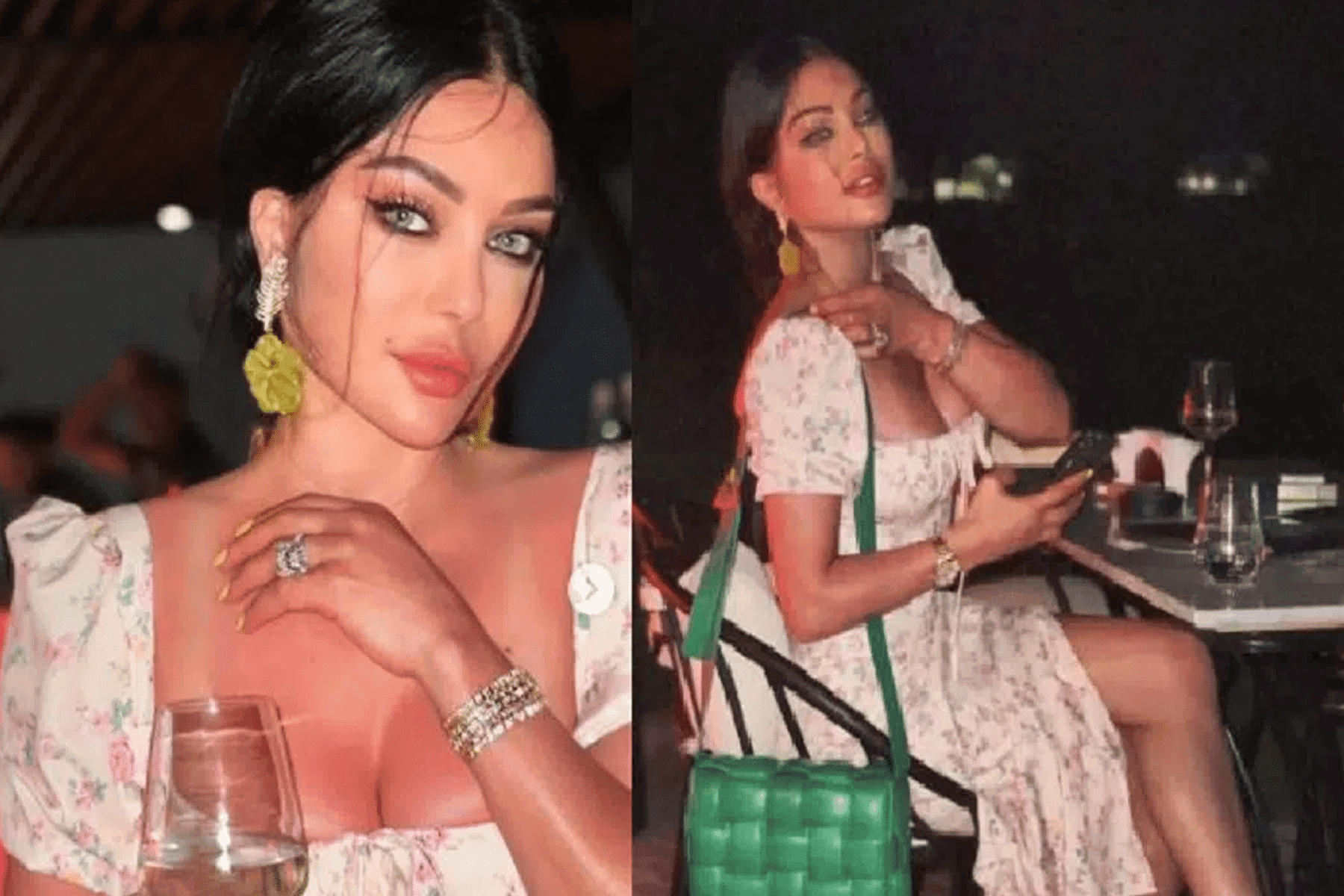وظهرت هيفاء وهبي في الصور التي نشرتها عبر حسابها الرسمي على (انستجرام)، بفستان أبيض بنقشة الورود، وفتحة طويلة لدى الساق، وأكمام قصيرة فضفاضة، وفتحة صدر جريئة.
