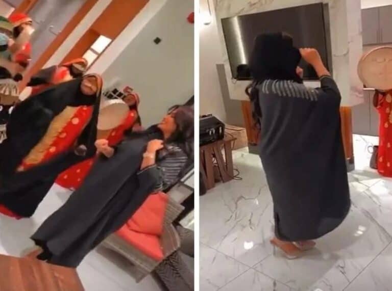 ولم يتضح ما إذا كانت بدور البراهيم ترقص خلال فعالية أو حفل، إلا أنها كانت لا ترتدي العباءة أو الطرحة قبل وصول الفرقة الغنائية الشعبية.
