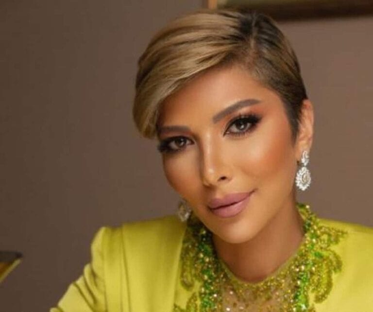 وقامت الفنانة السورية بقص شعرها وصبغه باللون الذهبى الداكن، مرتدية فستانا أبيض، وصحبتها بتعليق: “لقطات قبل حفل أبو ظبى”.