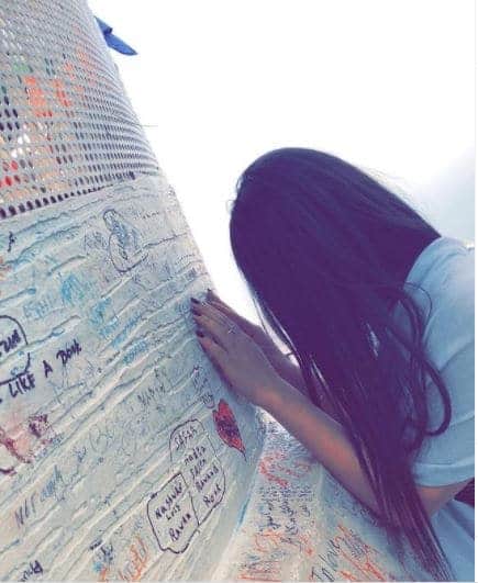 وظهرت إنجي في الصورة وهي تجلس أمام حجر، ويبدو أنه ضريح أحد المتوفين، حيث ظهرت وهي تستند عليه بوضعية السجود دون إظهار وجهها وكتبت تعقيباً عليها: (الحمدلله).