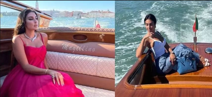 الغريب أن جورجينا بقيت مرتدية ذات المجوهرات التي ظهرت فيها على السجادة الحمراء، خلال فعاليات مهرجان فينيسيا السينمائي الدولي، وبقيت تسريحة شعرها ذاتها أيضاً.