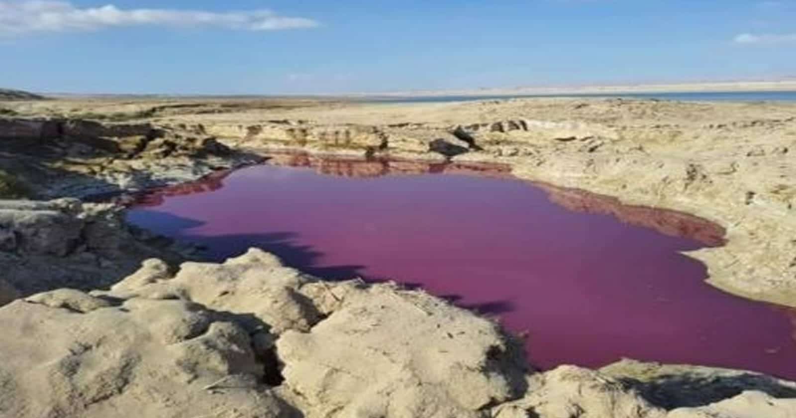 بركة مائية بجانب البحر الميت تتحول الى اللون الأحمر!