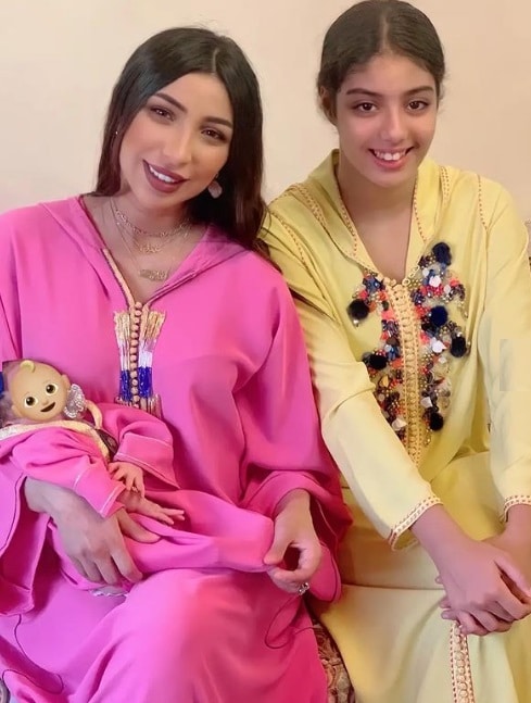 وظهرت المراهقة في مجموعة صور نشرتها دنيا وهي ترتدي قفطاناً أنيقاً ومزركشاً برفقة بنات خالتها.