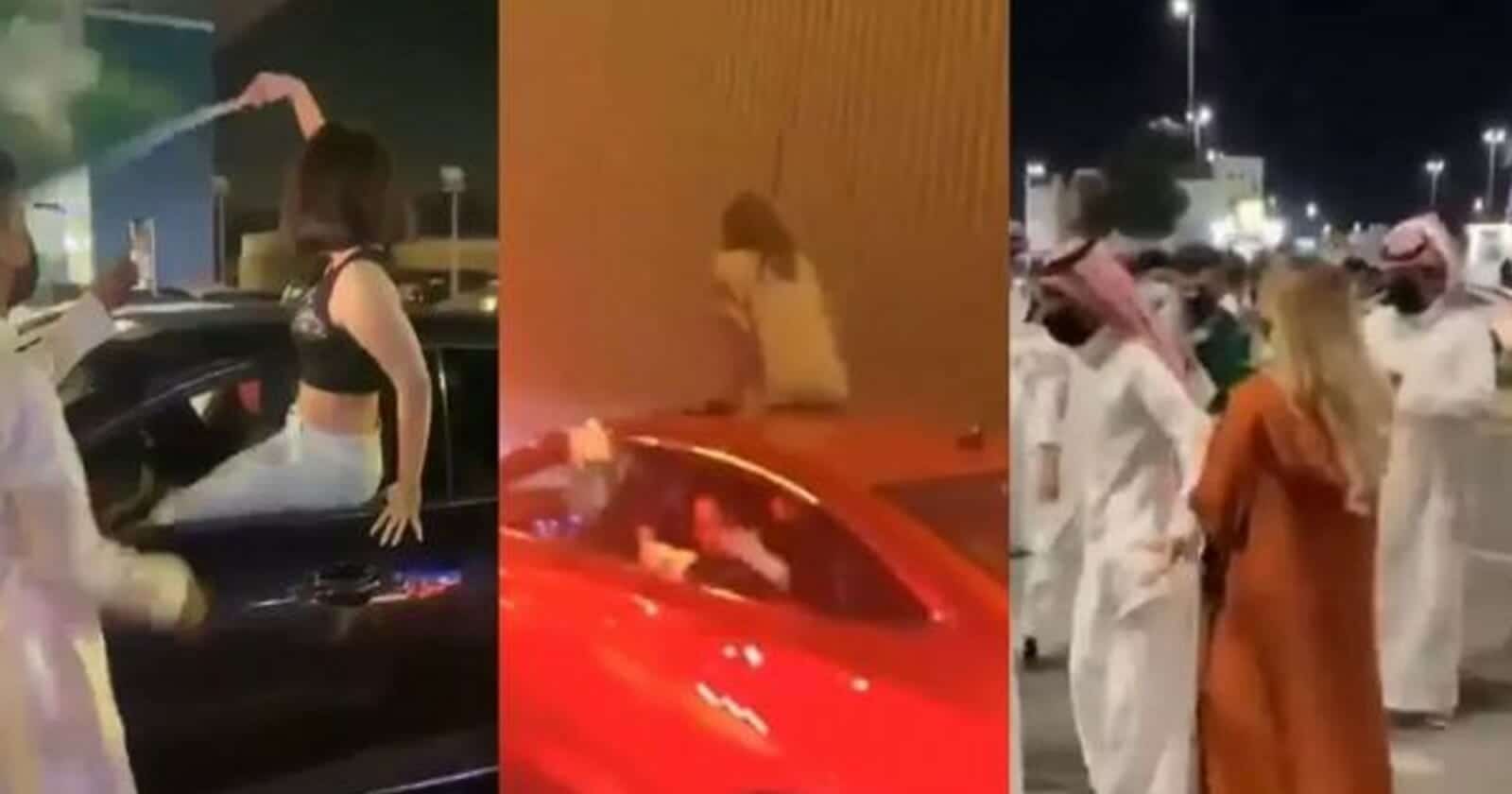 مقطع فيديو آخر جرى تداوله، أظهر صياح شبان وتجمهرهم حول فتيات في سيارة اثناء الاحتفال باليوم الوطني السعودي.