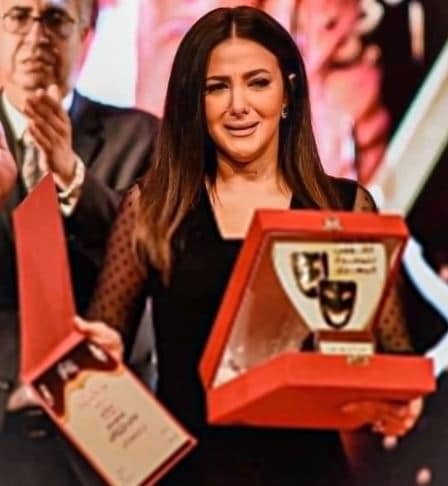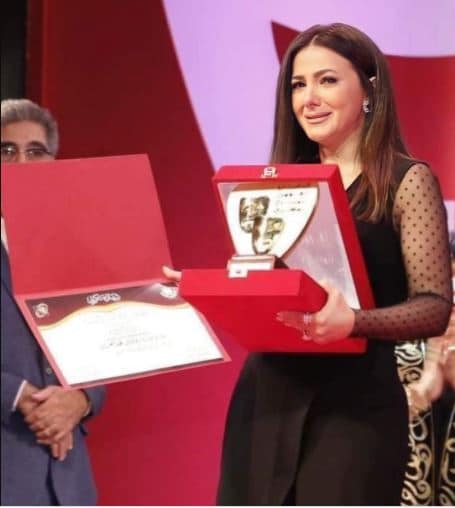 ولم تتمالك الفنانة المصرية نفسها، وظهرت تبكي لحظة تكريم والديها الراحلين سمير غانم وزوجته دلال عبدالعزيز.
