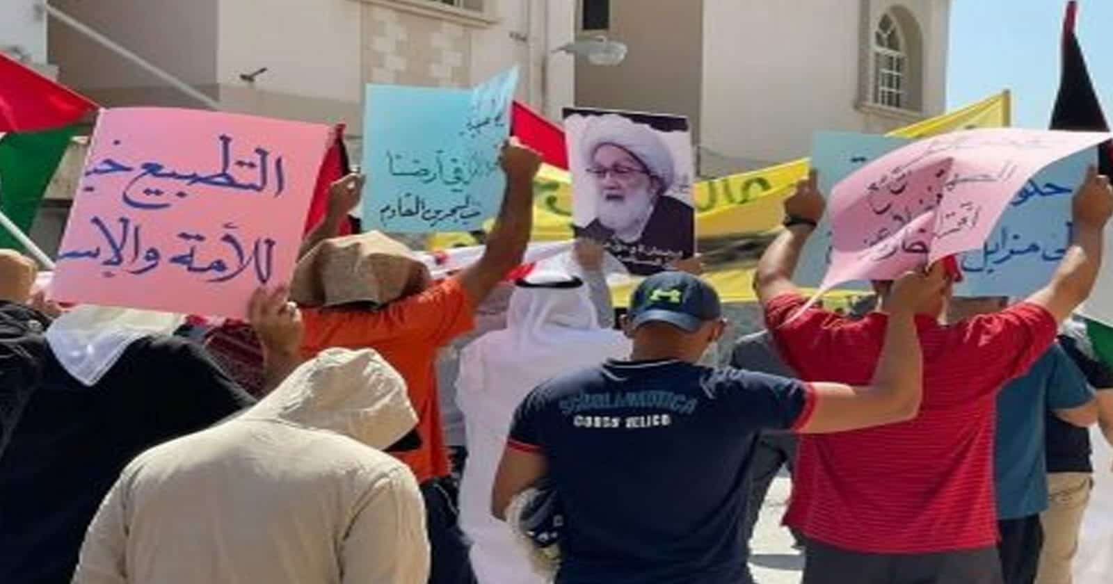 وطن- شهدت البحرين اليوم، الخميس، خروج تظاهرات حاشدة منددة بالتطبيع المخزي مع الكيان المحتل، وذلك تزامنا مع وصول وزير خارجية إسرائيل يائير لابيد للبحرين لأجل افتتاح سفارة الاحتلال هناك.