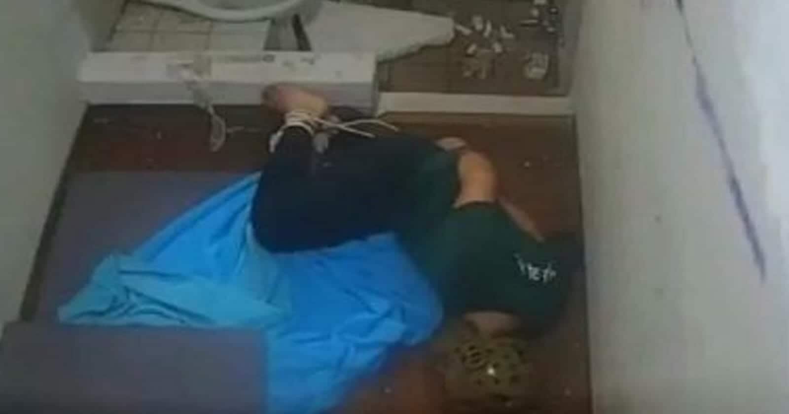 واظهرت لقطات كاميرات المراقبة المهاجر المغربي وهو مستلقي على بطنه ويداه ورجلاه مربوطتان بحبل خلف ظهره بالإضافة الى غطاء على رأسه مما جعله غير قادر على التحرك.