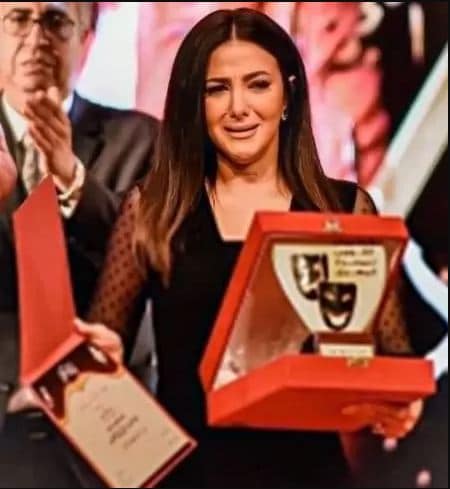 ولم تتمالك الفنانة المصرية نفسها، وظهرت تبكي لحظة تكريم والديها الراحلين سمير غانم وزوجته دلال عبدالعزيز.