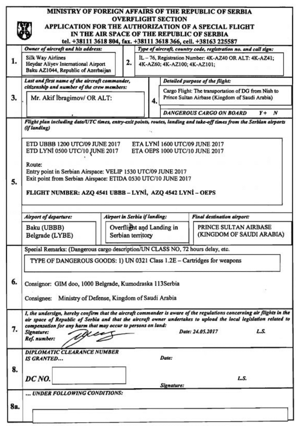 وكان الدور الأكبر لشركة “سيلك واي إيرلاينز” الأذربيجانية، التي نقلت الأسلحة الصربية التي اشترتها وزارة الدفاع السعوديّة في رحلات يتمّ التخليص الجمركي فيها وفقاً للبروتوكول الدبلوماسي.