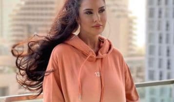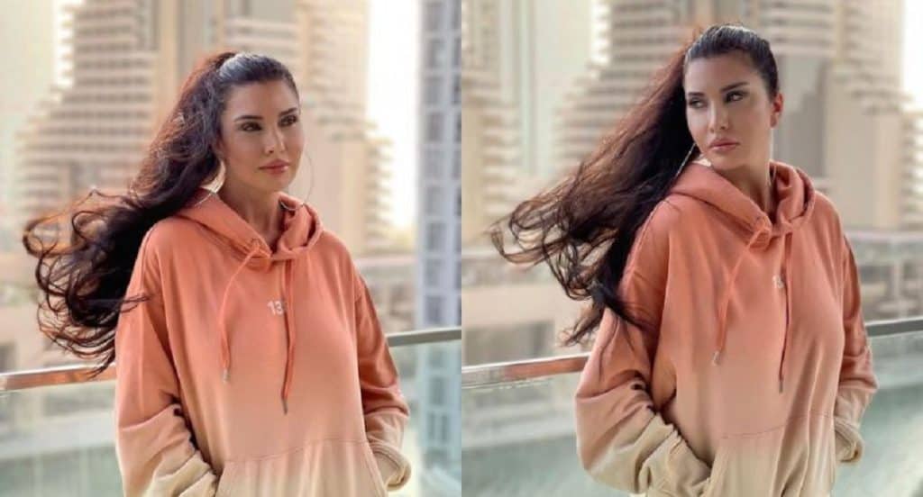 وأطلت لاميتا على شرفة منزلها في دبي بملابس شتوية من فوق، وهوت شورت من أسفل.