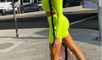 ونشرت لاميتا مجموعة صور عبر حسابها الرسمي على (انستجرام)، وهي ترتدي شورت ليجن، مع تيشرت بأكمام ونصف بطن، باللون الفسفوري.