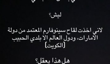 وتابعت: (لأني أخذت لقاح سينوفارم المعتمد من دولة الإمارات وباقي دول العالم إلا وطني الحبيب الكويت!).