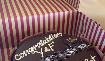 كما شاركت فاطمة حينها صورة لكيك كتب عليه (مبروك)، ووضع عليه أول أحرف من أسمائهما.