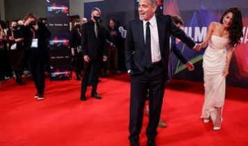 وحضر جورج كلوني بصحبة زوجته أمس الأحد، العرض الأول لفيلمه The Tender Bar في مهرجان لندن السينمائي، مرتدياً بدلة سوداء، بينما ارتدت أمل فستاناً أبيضاً لامع، وتبادلا القبل أمام الكاميرات كعادتهما.