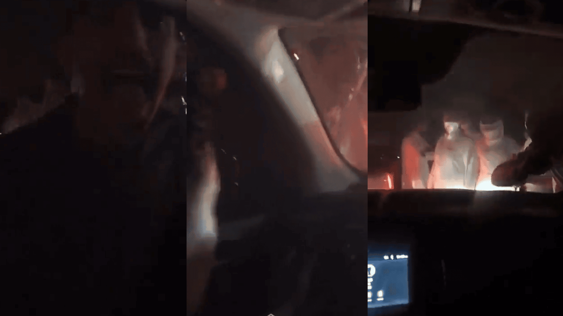 حيث تجمع الشبان حول السيارة وصدموا الفتيات بداخلها مما فعلوه، لتضحك إحداهن وتعبر عن صدمتها فيما سبت أخرى الشباب وسمع صوتها بالمقطع.