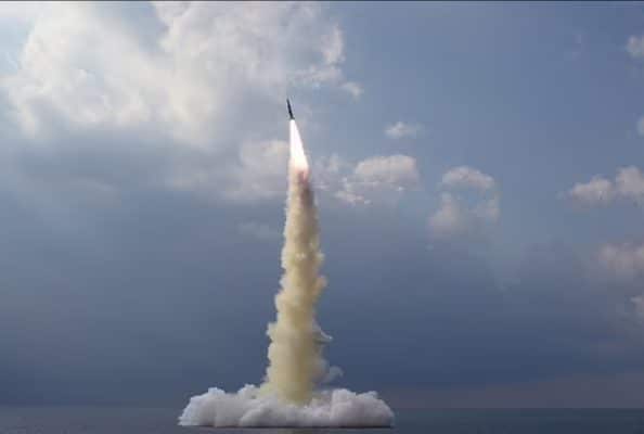 وأظهرت صور نشرتها وكالة الأنباء الكورية المركزية الرسمية (KCNA) لحظة اطلاق الصاروخ من المياه وغواصة على السطح.