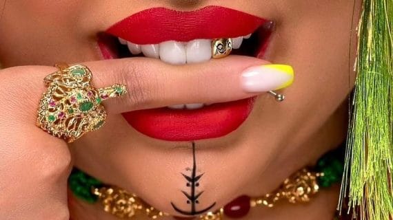 وأكملت دنيا بطمة إطلالتها المثيرة للجدل، ببعض الرسوم على وجهها.