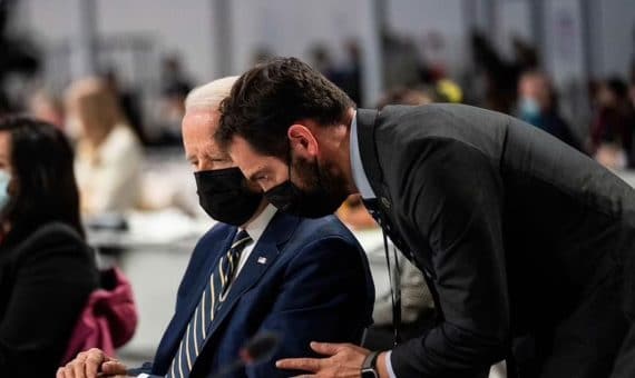 الرئيس بايدن يغفو في نوم هادئ خلال قمة المناخ في جلاسكو ومساعده ينبهه. pic.twitter.com/q7LSrvFovM