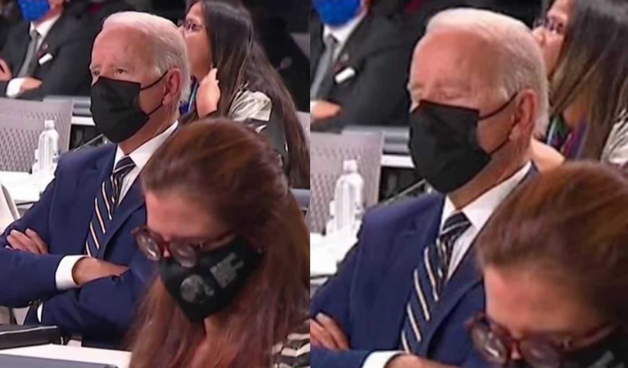 وثقت الكاميرات بقمة المناخ في غلاسكو، اليوم الإثنين، غفوة للرئيس الأمريكي جو بايدن “78 عاماً”، على الهواء مباشرة.