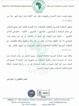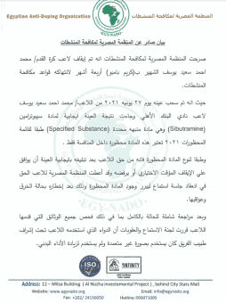 أعلنت المنظمة المصرية لمكافحة المنشطات في تصريح صحفي، إيقاف نجم فريق البنك الأهلي. كريم بامبو أربعة شهور كاملة بسبب انتهاكه لقواعد مكافحة المنشطات المحظور تناولها من قبل اللاعبين.