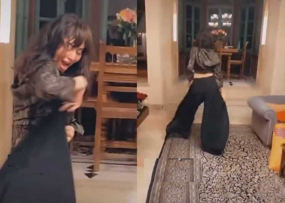 وأدت مريم حركات رقص مثيرة على أنغام أغنية أجنبية، وكأنها تحاكي طريقة النجمة العالمية شاكيرا في الرقص.