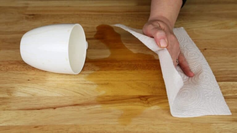 عند تنظيف البقع الناجمة من عصائر اللحوم على سطح خشبي مثل لوح التقطيع، تجنب استخدام المنشفة الورقية لأنها لن تمتص السائل بالكامل.