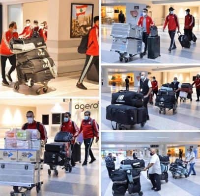 وانتشرت على نطاقٍ واسع، صور تظهر وصول لاعبي المنتخب الإماراتي الى مطار رفيق الحريري الدولي، ومعهم حقائب ضخمة، تبيّن أن بداخلها أسلحة للفريق الأمني، الذي سيوفّر الحماية للمنتخب.