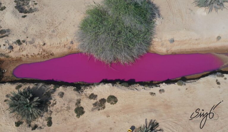 في مشهدٍ محيّر، تداول مغرّدون قطريون، على مواقع التواصل الإجتماعيّ، صوراً أثارة حيرة المتابعين، بعد تحولّ مياه “عين الثقب” شمال البلاد، إلى اللون الوردي.