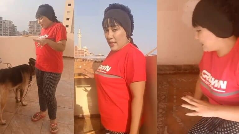 وظهرت السيدة المصرية بالفيديو الذي رصدته “وطن”، وهي على سطوح منزلها وتشرح لمتابعيها كيف صممت منزلاً يقي كلبها من برد الشتاء.