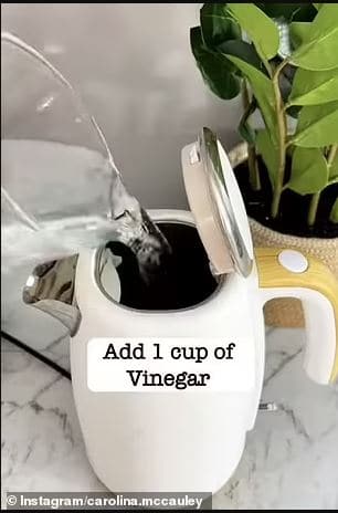 ولإزالة البقع من الغلاية، وضعت ماكولي كوبًا من الخل الأبيض وكوبًا واحدًا من الماء في الجهاز، ثم تركت ذلك الخليط يرتاح بالداخل لمدة 30 دقيقة قبل الغليان.