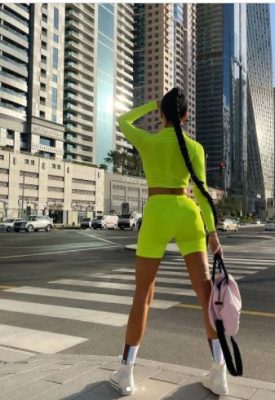 ونشرت لاميتا مجموعة صور وهي ترتدي شورت ليجن، مع تيشرت بأكمام ونصف بطن، باللون الفسفوري.