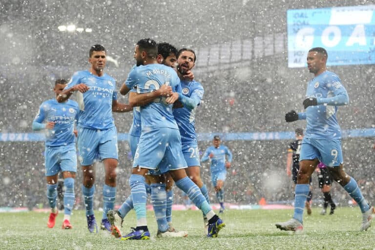 وفي خط الدفاع جاء كلاً من: بنيامين ميندي، ناثان آكي، روبن دياز، كانسيلو، بينما في خط الوسط آتى كلاً من: جوندوان، إيلكاي غوندوغان، جاك غريليش، وفي هجوم الفريق اعتمد على الثلاثي، رياض محرز، فيل فودين، برناردو سيلفا.