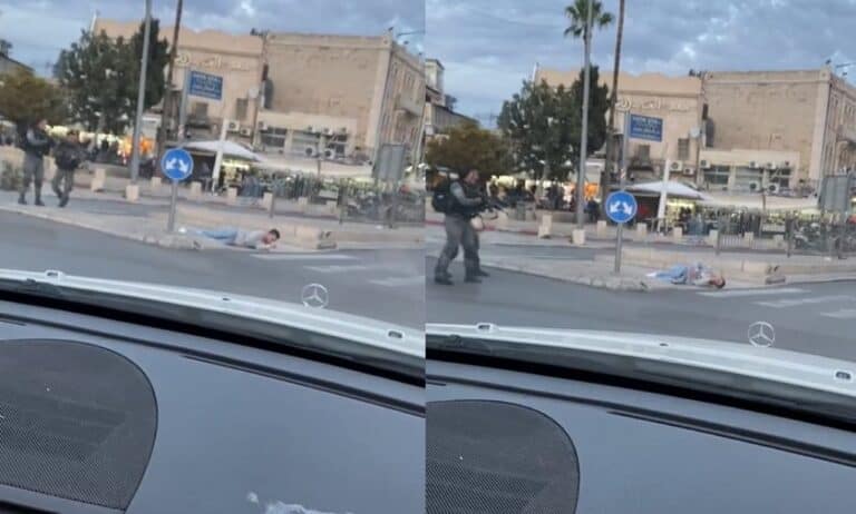 📸#شاهد إجرام جنود الإحتلال الإسرائيلي وهُم يُعدمون شاباً فلسطينياً أعزل في مدينة #القدس المحتلة مساء اليوم السبت!!