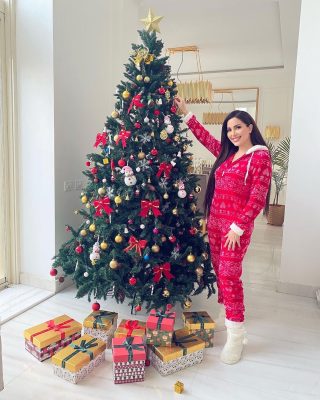 نسرين طافش تحتفل بالكريسماس ببيجامة حمراء! (صور)
