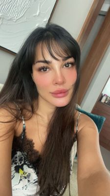 وظهرت نادين نجيم بالصور التي نشرتها عبر “انستجرام” بروب استحمام أبيض اللون.