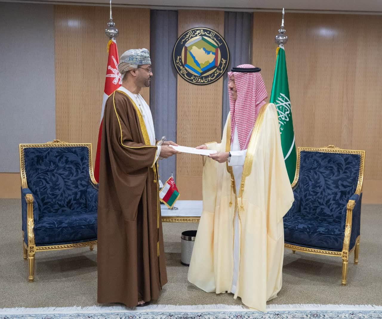 وتسلم الرسالة الأمير فيصل بن فرحان بن عبد الله وزير الخارجية، خلال استقباله، وزير خارجية سلطنة عمان السيد بدر بن حمد بن حمود البوسعيدي، في مقر الأمانة العامة لمجلس التعاون لدول الخليج العربية بالرياض.