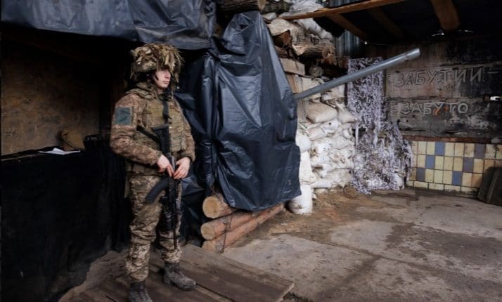 تمكن مراسل يعمل في صحيفة “ذا صن” البريطانية” من الوصول إلى حفرة لوحدة من وحدات الجيش الأوكراني على شكل خنادق الحرب العالمية الأولى المتمركزة على بعد امتار موجودة هناك تحسبا لأي هجوم روسي وشيك.