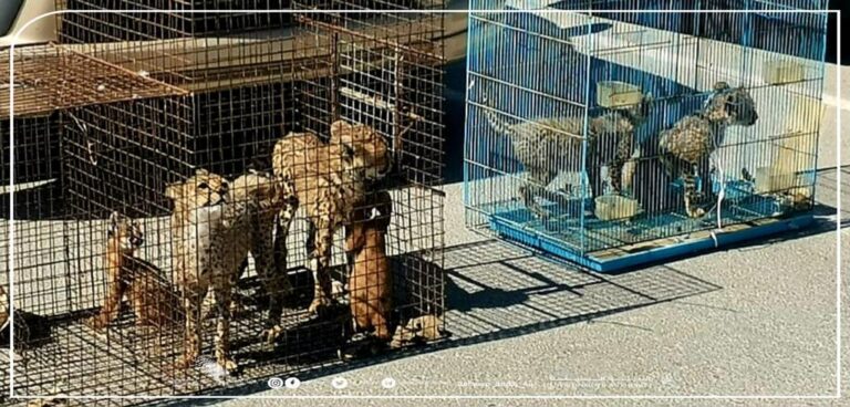 وكان بحوزة المهربين ـ وفق البيان ـ 5 من صغار الفهد و2 من حيوانات الوشق.