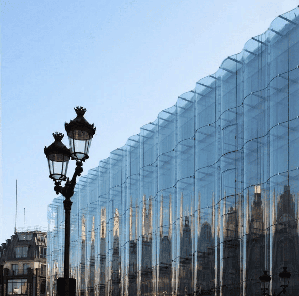 تضمنت إعادة التهيئة الشاملة للمبنى والتي قادها الاستوديو الحائز على جائزة بريتزكر للهندسة المعمارية إضافة واجهة زجاجية متموجة جديدة والتي وصفها النقاد بأنها تشبه ستارة الحمام.