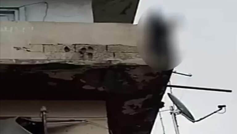 وعندما انتهى من تعذيبه شنقه بحبل متدلي من البلكون في الشارع بمشهد صادم، أغضب الجميع.