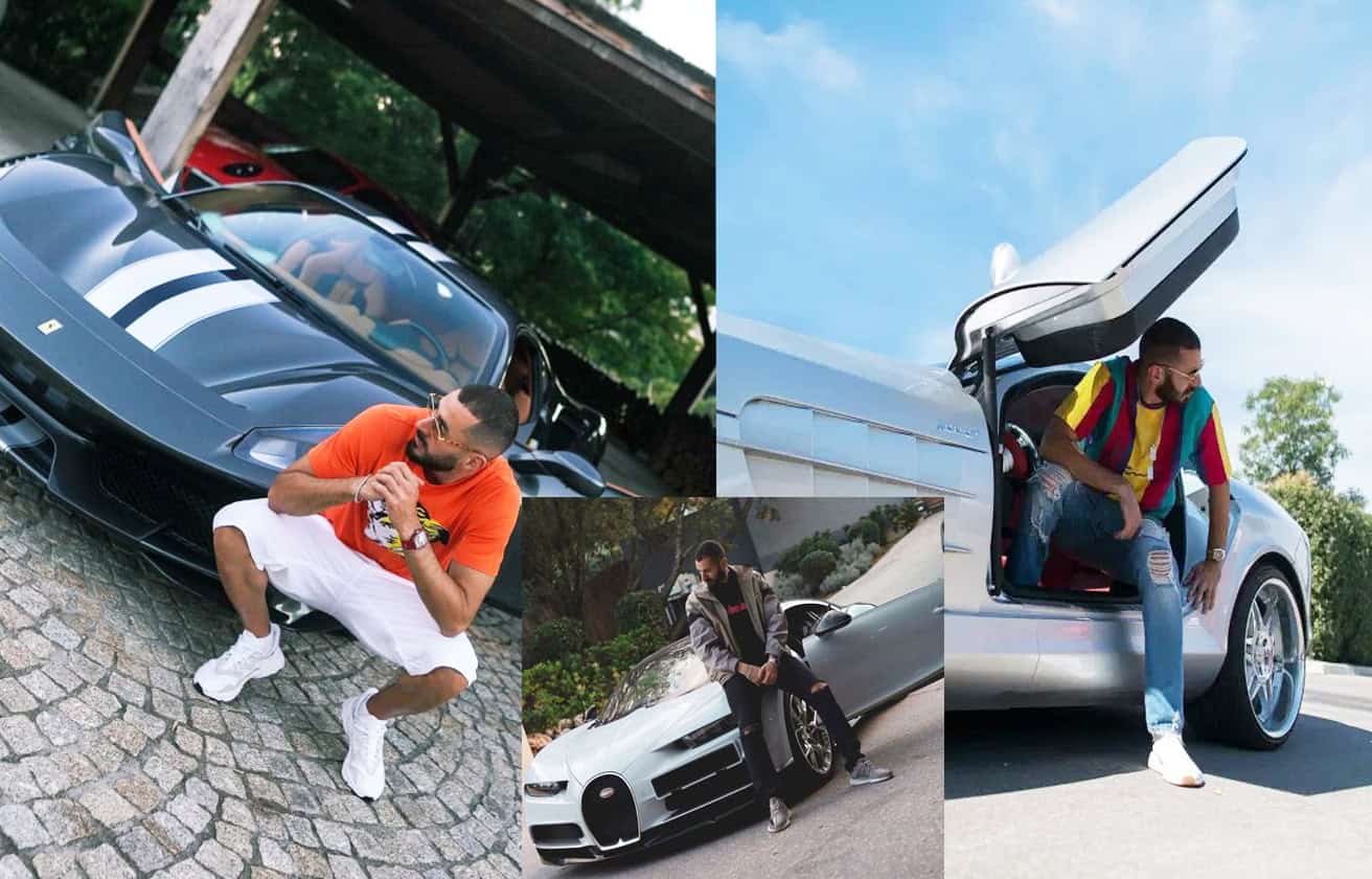 عرض النجم الفرنسي كريم بنزيما 33 عاماً، مهاجم فريق ريال مدريد الإسباني في مقطع فيديو نشره. عبر حسابه على مواقع التواصل الاجتماعي لأسطول سياراته الفارهة التي تحمل اسمه “KB9″، على غرار العلامة التجارية الشهيرة لصديقه البرتغالي كريستيانو رونالدو “CR7”.
