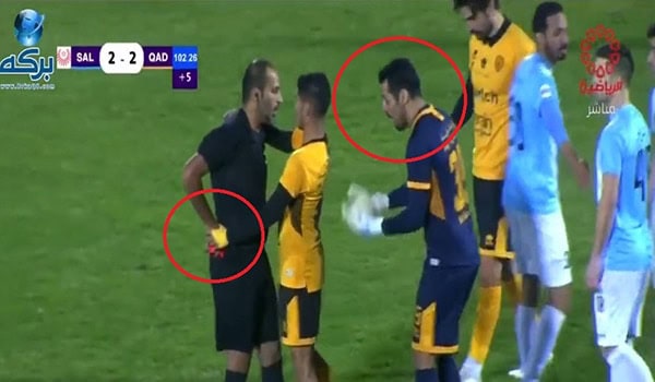 حارس القادسية يعرقل حكم المباراة في لقطة مثيرة للجدل والأخير يطرده (شاهد)