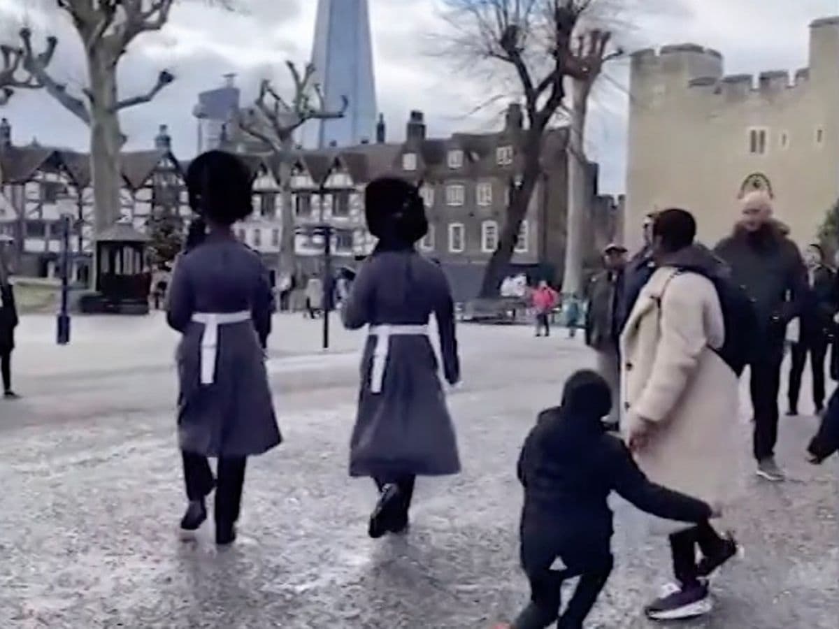 وثق فيديو للحرس الملكي البريطاني، ردة فعلهم الصادمة بعد مرور طفل أمامهم أثناء دورية روتينية، مما فجر جدلاً عبر مواقع التواصل الاجتماعي.