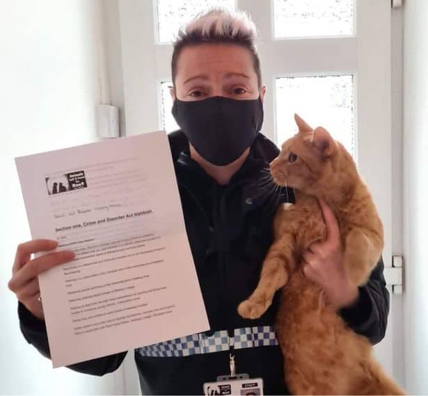 كما قامت شرطية تدعى “ناتاشا” بنشر صورتها على الصفحة الخاصة بمركز ميدواي في فيسبوك وهي تحمل القط بيدها اليسرى. وبيدها الأخرى تحمل ورقة مدون عليها الاتهامات الموجهة للقط.