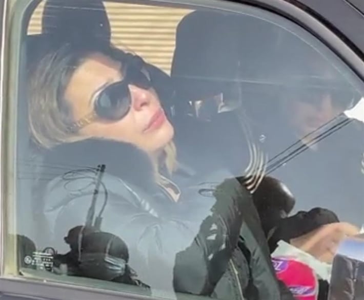 فقد ارتدت زوجة الإبراشي ملابس سوداء، لكن بنطالها كان ضيقاً بشكل كبير، وكشف تفاصيل جسدها.