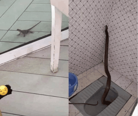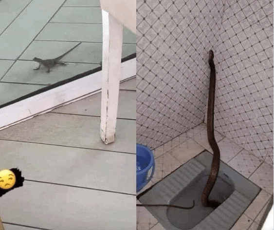 وأظهرت إحدى الصور، خروج ثعبان ضخم من قاعدة الحمام الذي تستخدمه البعثة في مكان إقامتهم.