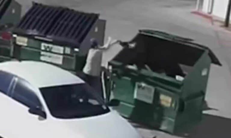 ويُظهر مقطع فيديو للمراقبة مراهقة تصل في سيارة. قبل أن تفتح الباب الخلفي وتلقي بحقيبة قمامة سوداء في حاوية قمامة في هوبز بنيو مكسيكو. حوالي الساعة 2 ظهرًا يوم 7 يناير الماضي.
