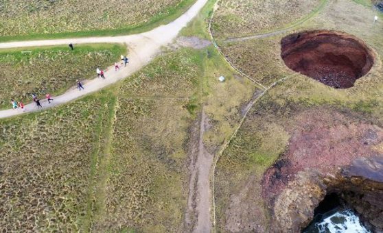 فيما يحذر الصندوق الوطني، الذي يدير مسار الجرف حول الحفرة، المشاة وأصحاب الكلاب من تجنب المنطقة.