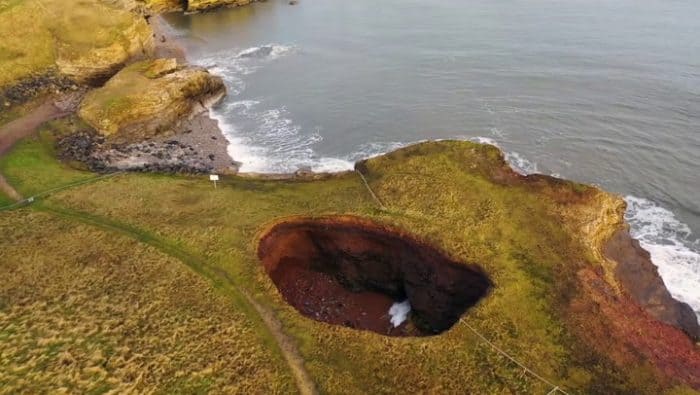 كشفت الظاهرة الطبيعية، المسماة Souter Hole (المجرى الضخم) الذي يبلغ ارتفاعه 40 قدمًا والذي ينمو كل عام، بالقرب من سندرلاند، في شمال شرق إنجلترا، عن شاطئ سري مخفي تحت الأرض.