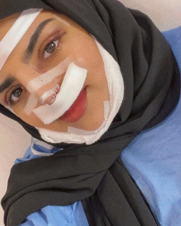 وظهرت سارة الودعاني بفيديو متداول رصدته “وطن”، وهي تزيل الضمادات وظهر شكلها مختلفاً تماماً. وبدا الانتفاخ من آثار العملية واضحاً حول عينيها وأنفها.